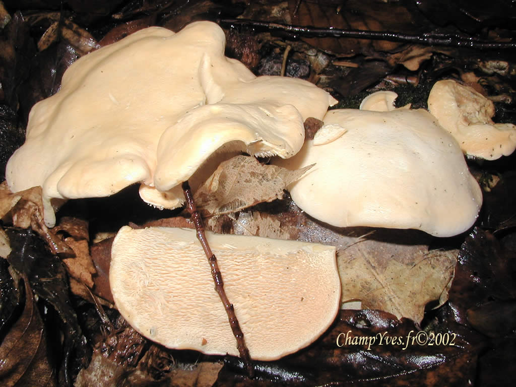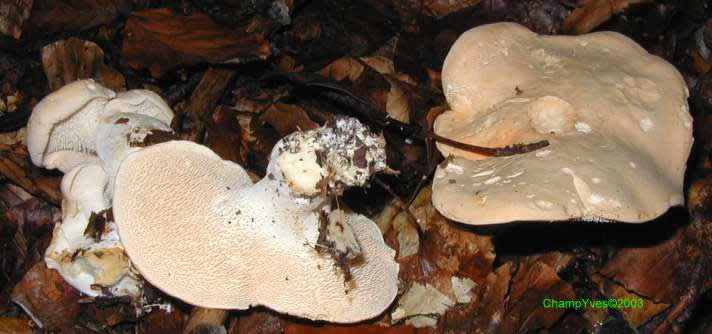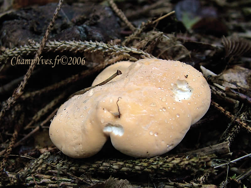 | | | Chapeau : | | de 4 à 15 cm, massif, de forme très variable, irrégulièrement bosselé, souvent soudé les uns aux autres, convexe puis étalé, déprimé ; cuticule adnée, sèche, mate, de crème à chamois, non zonée et non écailleuse ;