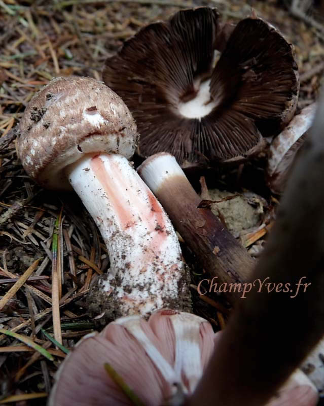 | Règne : Fungi Division : Basidiomycota S/Division : Agaricomycotina Classe : Agaricomycètes S/Classe : Agaricomycetideae Ordre : Agaricales Famille : Agaricaceae Genre : Agaricus | | Photo © ChampYves | Réf : C.D.2011 |